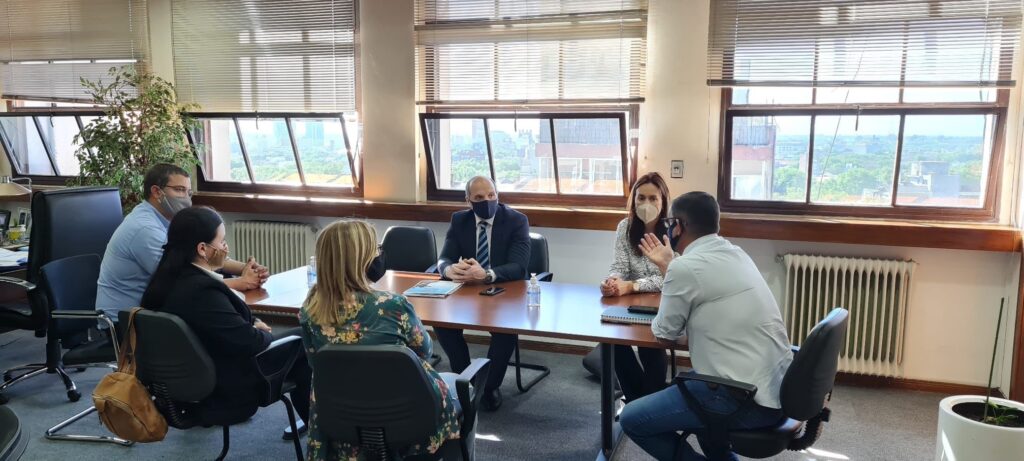 Hoy martes 26 se mantuvo una reunión de trabajo con el Vicepresidente de BPS Lic. Daniel Graffigna, la Coordinadora de Descentralización de OPP Maria de Lima, Presidente de Fuerzas Vivas NH John Silveira, la Presidenta y Tesorera del Centro Regional de Cultura Cine Helvético Monica Font y Romina Menendez, y el Alcalde Marcelo Alonso Haller.