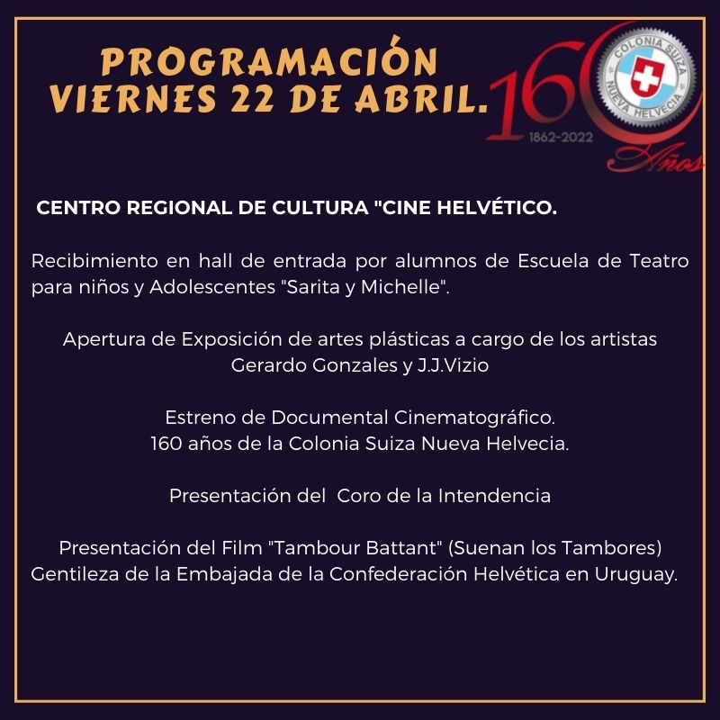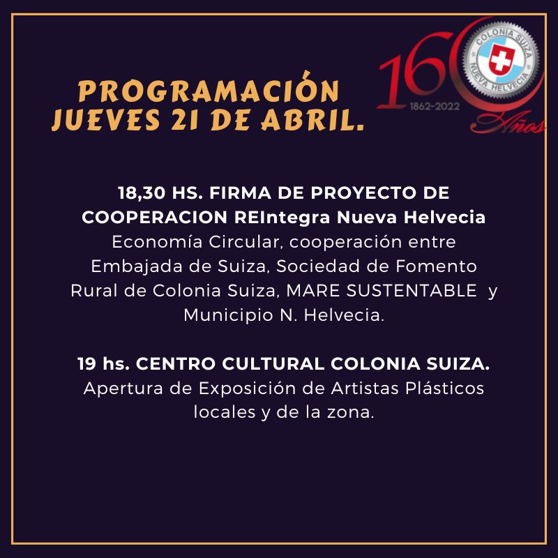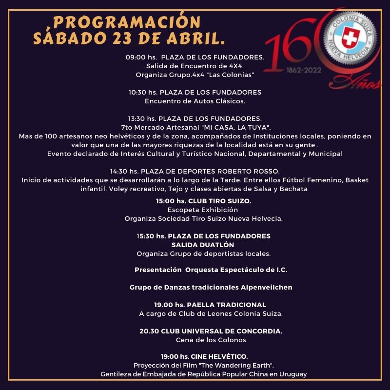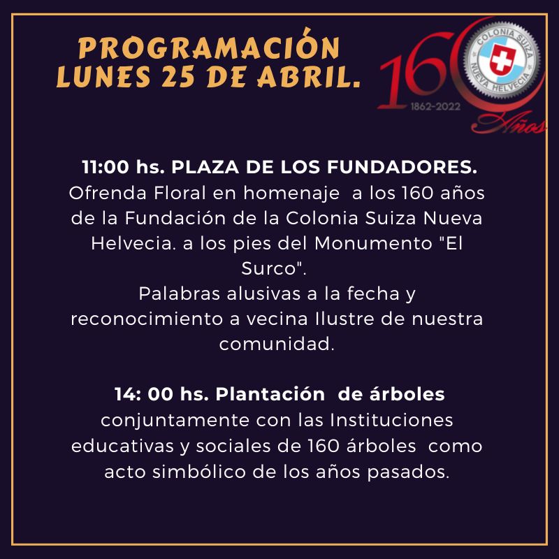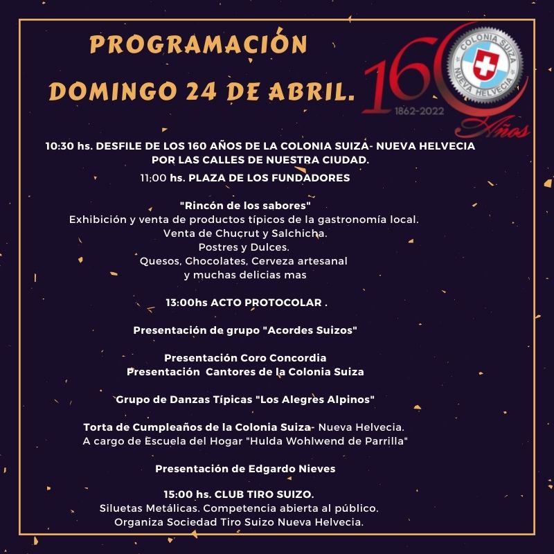 PROGRAMACIÓN FESTEJOS 160 AÑOS DE NUEVA HELVECIA
